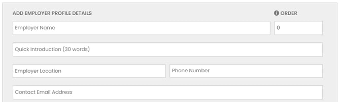 - Employer location: The location details will be displayed on the profile and generate a map on the Employer Profile (this is not a mandatory field).