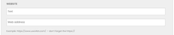 - Website text: this will be displayed on the profile as text with a hyperlink to the website address.