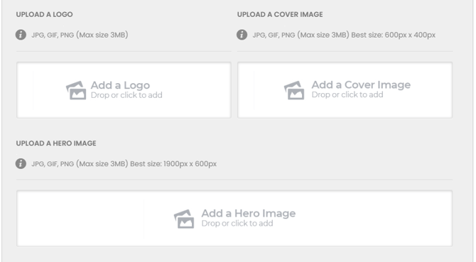 High-quality images and logos must meet the size specifications indicated, or the uploaded files will be rejected.